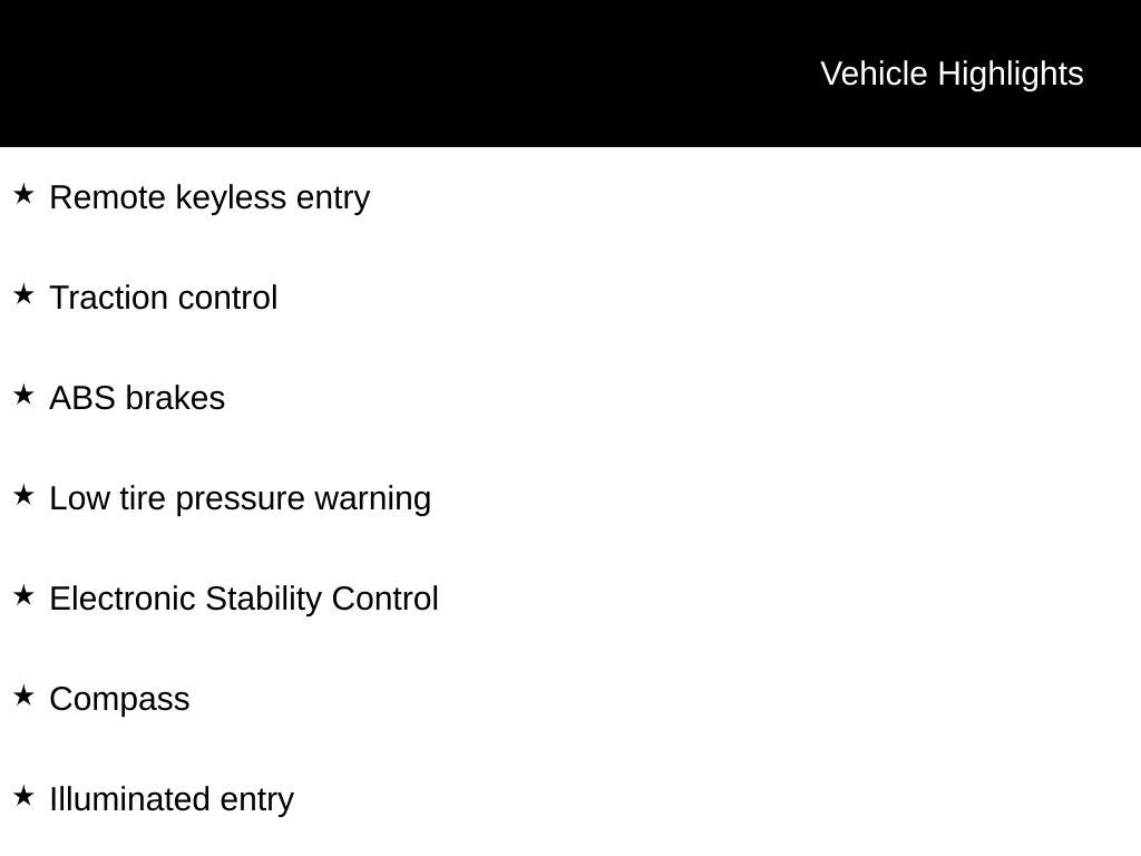 - Remote Keyless Entry w/Integrated Key Transmitter, Illuminated Entry and Panic Button