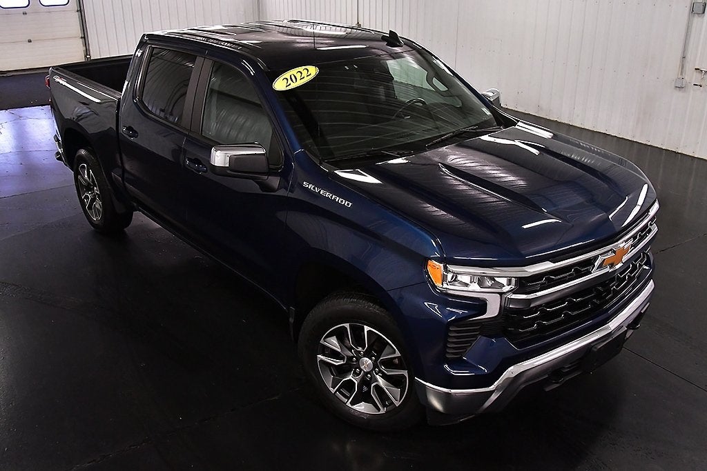 Recent Arrival! CARFAX One-Owner. Clean CARFAX. Northsky Blue Metallic 2022 Chevrolet Silverado 1500 LT 4WD 8-Speed Automatic This 2022 Chevrolet Silverado 1500 LT in Northsky Blue Metallic features: Odometer is 4380 miles below market average! 10-Way Power Driver Seat w/Lumbar, 12.3 Multicolor Reconfigurable Digital Display, 120-Volt Bed Mounted Power Outlet, 120-Volt Instrument Panel Power Outlet, 3.42 Rear Axle Ratio, All-Star Edition, Apple CarPlay/Android Auto, Automatic Emergency Braking, Bumpers: chrome, Chrome Mirror Caps, Convenience Package, Dual Rear USB Ports (Charge Only), Dual-Zone Automatic Climate Control, Heated Driver & Front Outboard Passenger Seats, Heated Steering Wheel, High Capacity Suspension Package, Keyless Open & Start, Leather Wrapped Steering Wheel, Manual Tilt/Telescoping Steering Column.