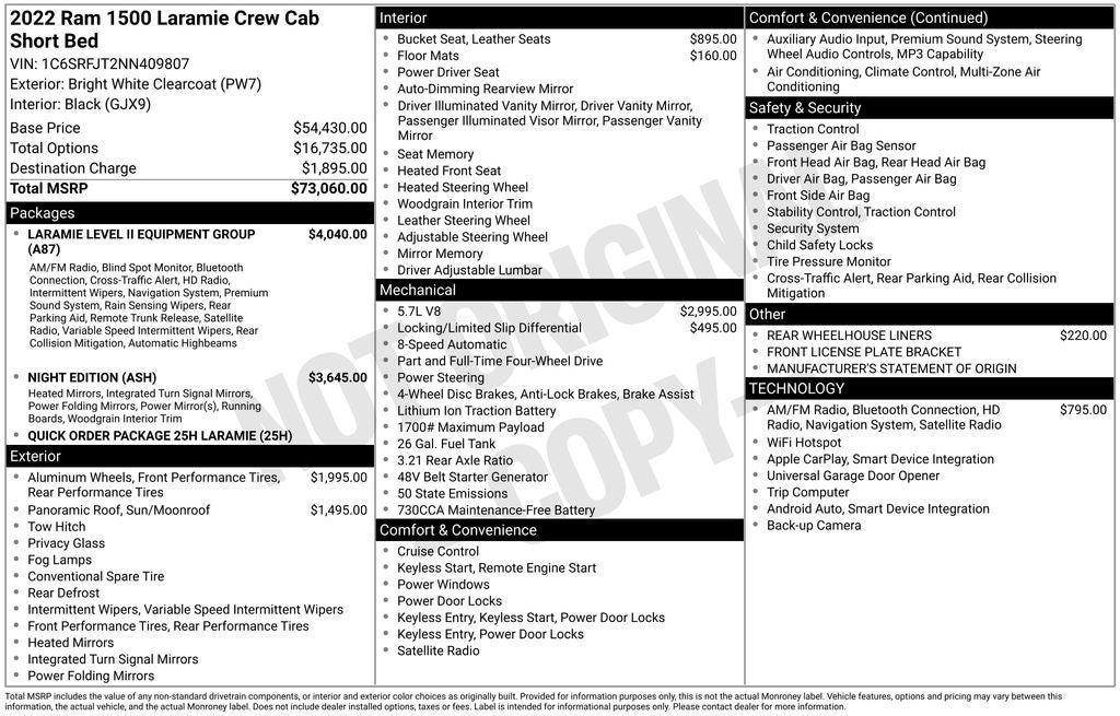 - Vehicle Name: Ram 1500