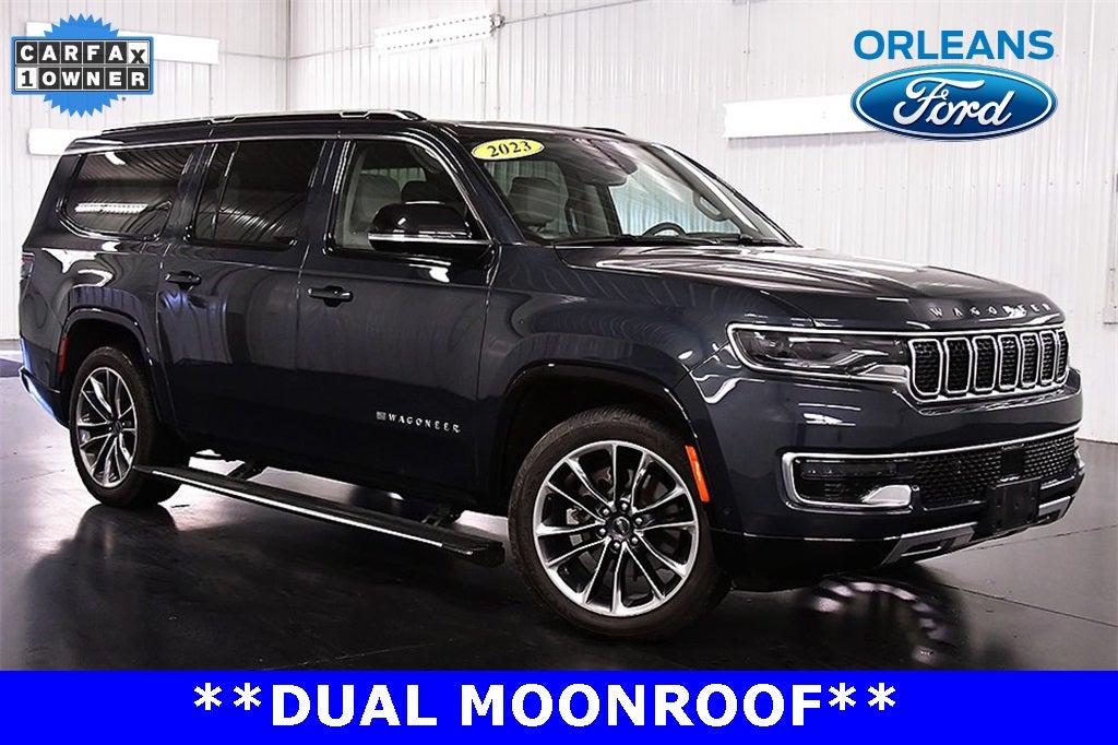 Recent Arrival! CARFAX One-Owner. River Rock 2023 Jeep Wagoneer L Series III 4WD 8-Speed Automatic This 2023 Jeep Wagoneer L Series III in River Rock features: 19 Speaker McIntosh Audio System, 3 Panel Sunroof, Adjustable Roof Rail Crossbars, Heads-Up Display, Luxury Front & Rear Floor Mats, Navigation System, Power Deployable Running Boards, Preferred Equipment Group, Premium Group I, Quadra-Lift Air Suspension, Quick Order Package 25N, Reversible Carpet/Vinyl Cargo Mat, Semi Active Damping, Wheels: 22 x 9.0 Premium 3 Aluminum.