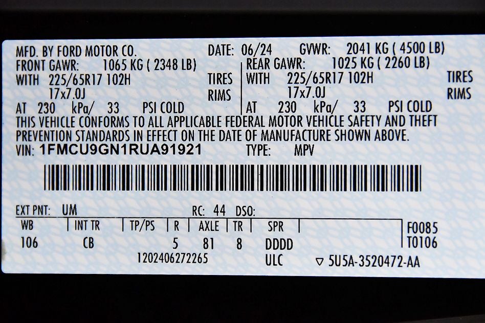 - Vehicle Name: Ford Escape