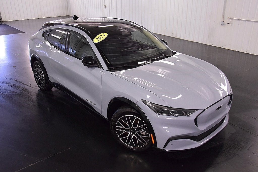 Recent Arrival! CARFAX One-Owner. Glacier Gray Metallic 2024 Ford Mustang Mach-E Premium AWD Single-Speed Automatic This 2024 Ford Mustang Mach-E Premium in Glacier Gray Metallic features: