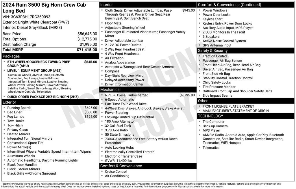 - Vehicle Name: Ram 3500